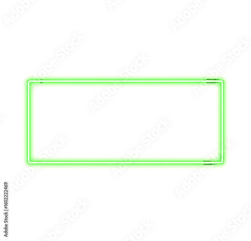 Fototapeta premium Bright Green Neon Rectangular Border for Banner or Mockup Design Isolated on white background