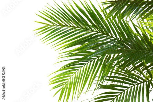 Obraz premium Bright green palm fronds against a stark black background with subtle light highlights leaf tropical, Isolated On Transparent Background, Png Cut Out