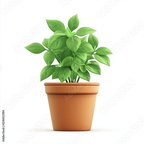 © Futuristictech, Fototapeta premium Bright Green Plant in Clay Pot on White Background for Decoration