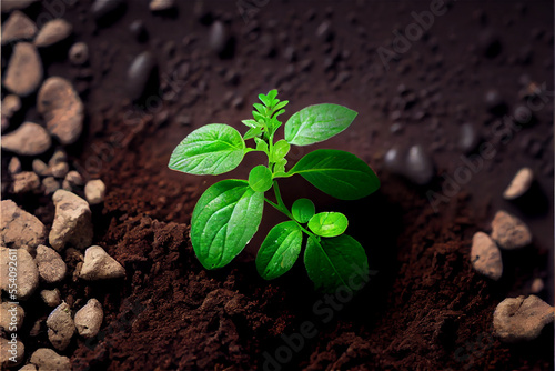 © FrankBoston, Naklejka premium bright green plant sprout growing in rich soil