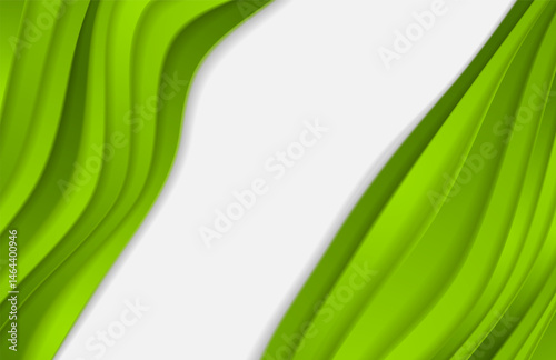 © saicle, Naklejka premium Bright green smooth waves minimal abstract elegant background. Vector corporate paper wavy curves design