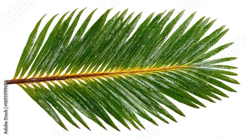 © Echo, Naklejka premium Bright green sprig with needle-like leaves radiating from a central stem, isolated on a white background