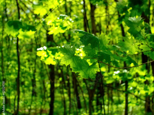 Obraz premium bright greenery in the spring forest