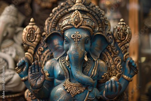 © Oleksandr, Fototapeta premium Bright holiday composition for happy Ganesh Chaturthi, abstract vivid composition consists of fictional unreal fantastic vision on background