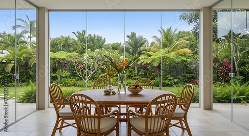 © Zainal, Obraz premium Bright Indoor Dining Space with Garden View