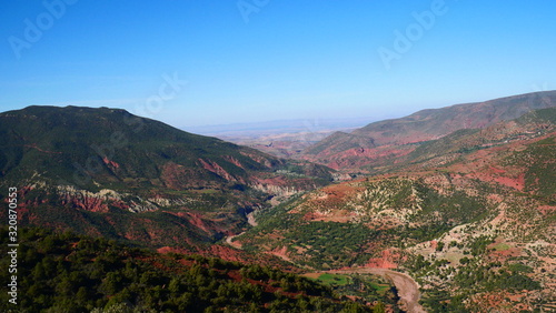© Rick, Naklejka premium Bright landscape of Morocco, breathtaking curves of mountains, stunning combination of hills & farm land,inadvertent distribution of houses & huts, raw impression of pure nature.