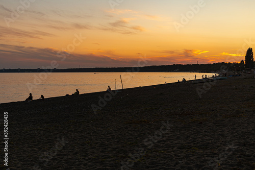 © viktor, Fototapeta premium Bright landscape with sunset on the beach.