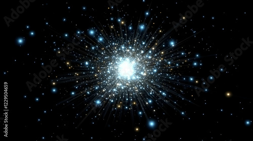 © Siasart Stock, Fototapeta premium Bright Light Explodes with Particles and Sparkles on a Black Background Abstract Illustration