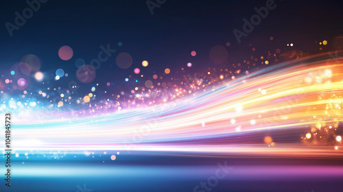 Fototapeta premium Bright light strips move rapidly through space, forming abstract patterns...