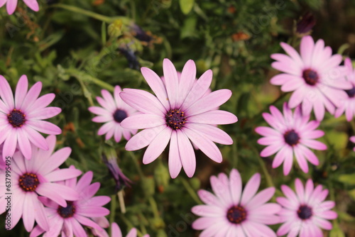 Obraz premium Bright Lights daisybushes aka African daisies (Osteospermum) bush with a single bloom centred