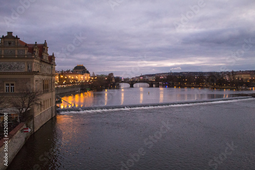 Fototapeta premium Bright lights of evening Prague, cityscape of Prague bridges, view of Charles...