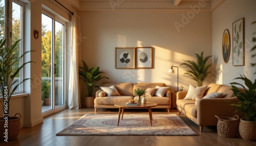 Fototapeta premium Bright Living Room Interior with Natural Light