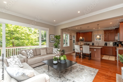 © Asiah, Fototapeta premium Bright Living Room with Natural Light and Cozy Decor