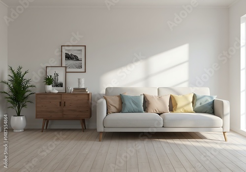 © Foysal, Fototapeta premium Bright living room with white sofa