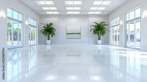 Fototapeta premium Bright Lobby with Plants and Artwork