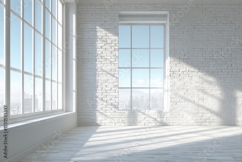 Fototapeta premium Bright loft space with large windows