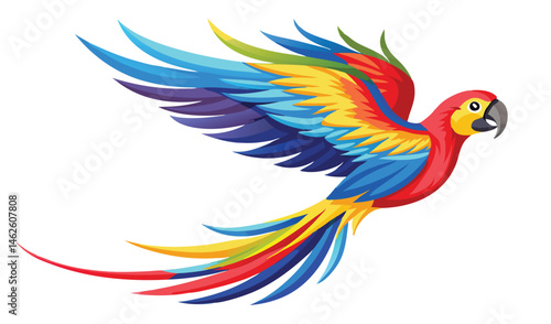 © Rafijur , Obraz premium Bright Macaw Soaring with Colorful Plumage Spread