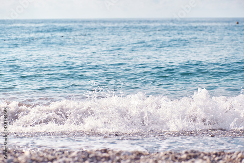 Fototapeta premium Bright Mediterranean sea and waves. Sunny day. Summer and rest. Summer fun...