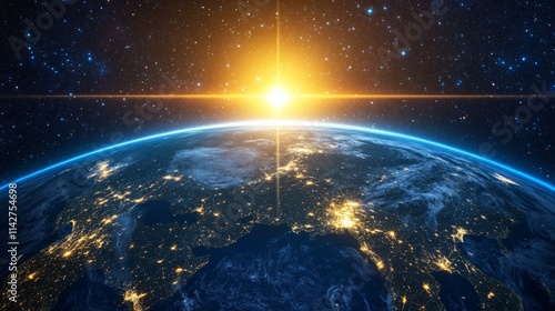 © WanCorp, Obraz premium Bright Minimalist Earth and Sun with Layered Graphics