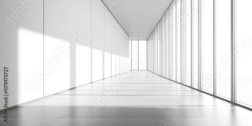 Obraz premium Bright, minimalist hallway with floor-to-ceiling windows, casting soft...