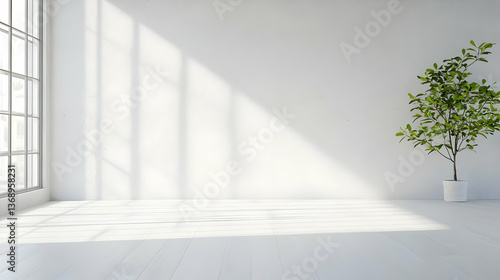 Fototapeta premium Bright Minimalist Interior With Large Windows And Plant