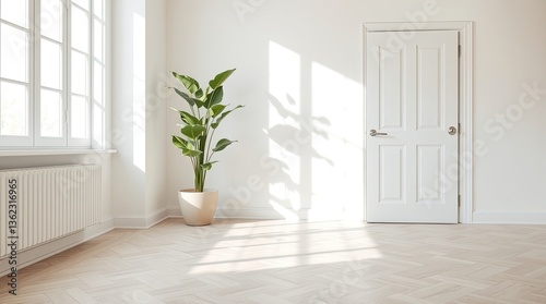 © Rika, Obraz premium Bright minimalist room featuring a plant door and window