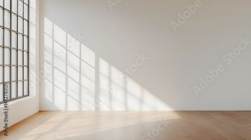 Fototapeta premium Bright, minimalist room with geometric wall shadows
