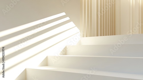 © Rosnani, Obraz premium Bright, minimalist staircase with soft light.