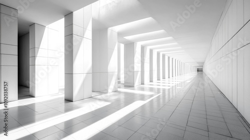Fototapeta premium Bright modern corridor with clean lines and light.