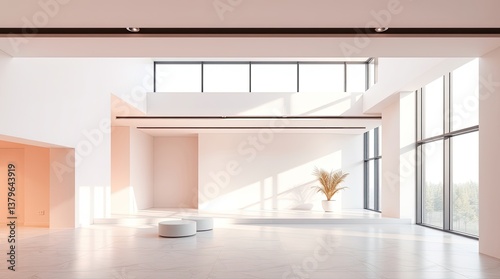Obraz premium Bright modern interior showcasing an open floor plan with ample natural light