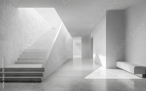 Fototapeta premium Bright modern interior with minimalist design and natural light in a spacious building