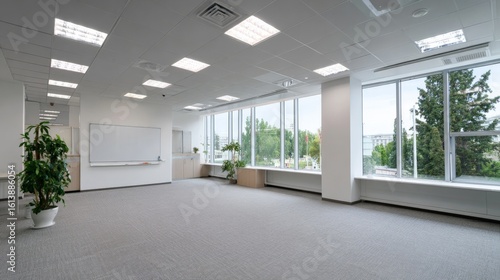 Fototapeta premium Bright modern office with large windows and minimalistic design