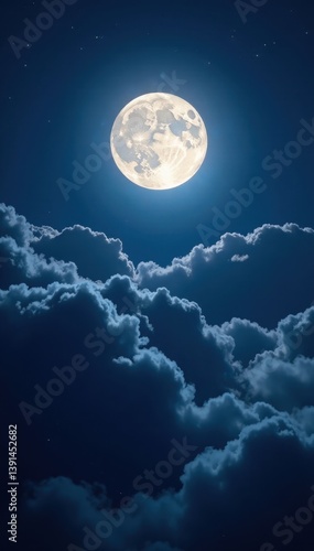 © Pornchai, Obraz premium Bright moon peeks through, thick clouds veil the night, atmospheric, moonlight