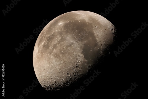 © ckybe, Fototapeta premium Bright moon with craters visible in night sky on a smooth surface.