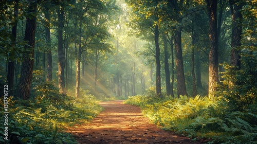 © diowcnx, Obraz premium Bright Morning in a Sunny Forest
