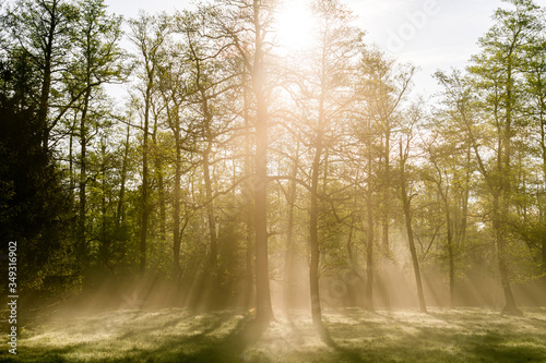 © Dawid Śliwka, Fototapeta premium Bright morning in the forest with mist