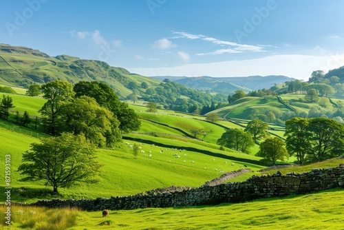 Fototapeta premium bright morning light creates a picturesque countryside scene