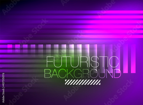 Fototapeta premium Bright neon color techno abstract background, shiny glowing neon lines in the...