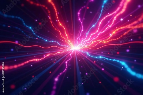 Naklejka premium Bright neon light burst with swirling abstract colors against dark background, energy, dark, dynamic