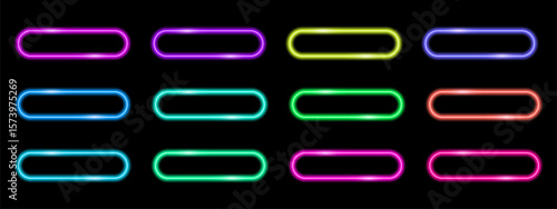 Obraz premium Bright neon rectangle frames with laser light effect. Vector design for tech...