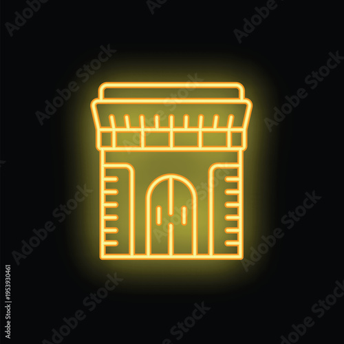 © ylivdesign, Fototapeta premium Bright neon yellow illustration of an ancient castle tower glowing on a black background