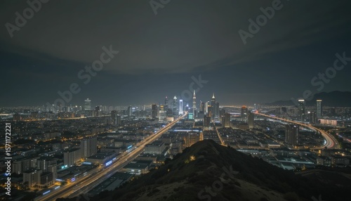 © Areeba, Obraz premium Bright Night City Lights from Above