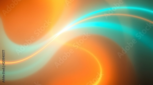 © Zia, Obraz premium Bright orange abstract background with glowing waves and a golden texture pattern