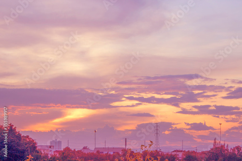 Fototapeta premium Bright orange and yellow colors sunset sky
