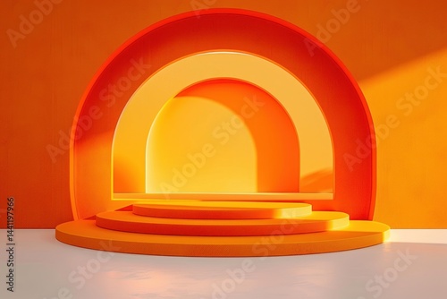 Obraz premium Bright orange and yellow semi-circular layered stage with soft shadows and...