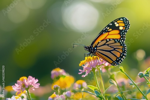 © Mark, Fototapeta premium Bright orange butterfly on purple flower