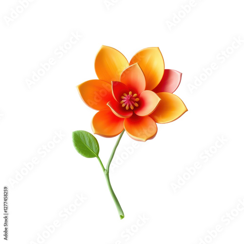 © Santorn, Fototapeta premium Bright Orange Flower with Petals and Leaf on a White Background