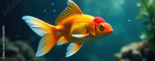 Fototapeta premium Bright orange goldfish, close-up underwater view, nature, animal photography,...