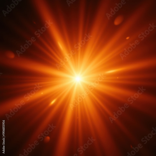 © Oran, Obraz premium Bright orange light radiates outward, creating starburst effect with vibrant rays. This evokes warmth and energy, perfect for various creative