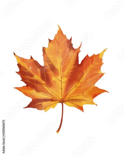 © Iryna, Obraz premium Bright orange maple leaf showcasing autumn colors against a white background during fall season